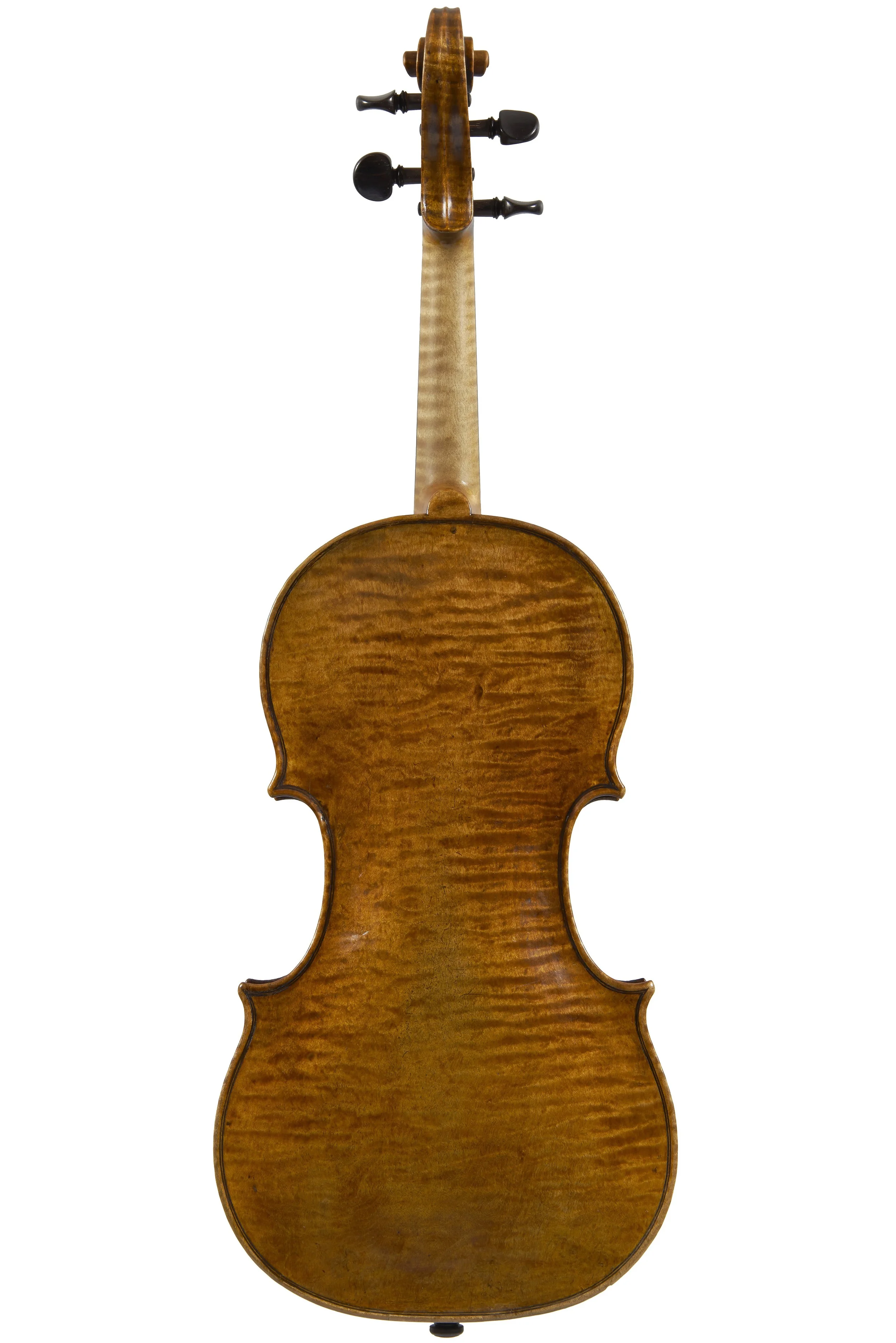 The back is made of a single piece of maple cut on the slab with irregular flames of medium width running horizontally; the ribs and scroll are of similar wood; the table is in two pieces of regular medium grain; the varnish is of a golden brown colour. The instrument is labelled Hieronymous Amatus Cremonensis Nicolai filii ac Antonii Nepos fecit 1659.